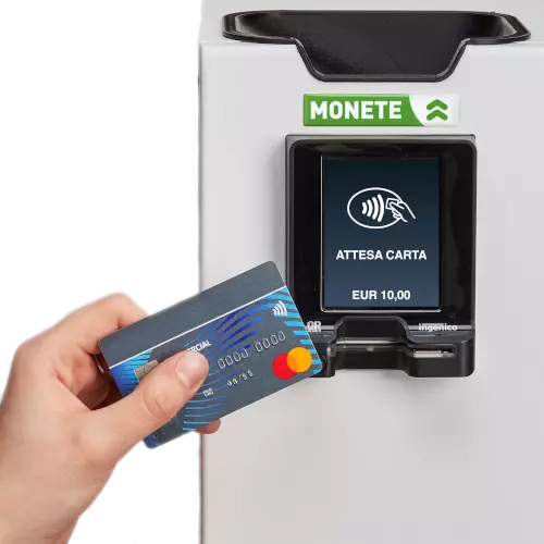 La macchina garantisce pagamenti veloci, facili e sicuri con banconote, monete. Grazie al POS Ingenico integrato, accetta tutti i pagamenti digitali con carte, bancomat (anche contacless) e le maggiori applicazioni di pagamento per dispositivi mobile come gli smarphone o gli smartwatch. Tutte le operazioni sono visualizzabili e gestibili su di un comodo schermo 7″ LCD touch.