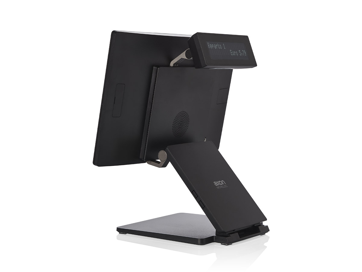 Il sistema POS serie P6400 PRIME di Axon Micrelec presenta un design compatto e raffinato, pensato per adattarsi alle esigenze del retail e dell’hospitality. Il display da 15” a cornice ridotta, con vetro temperato ultraresistente e tecnologia multitouch capacitiva, unisce design moderno e ottime prestazioni di leggibilità. La scocca in alluminio pressofuso che rende il sistema POS serie P6400 PRIME di Axon Micrelec solido e leggero, include un innovativo sistema che ne ottimizza il raffreddamento. I due punti di snodo permettono di regolare facilmente l’altezza e l’angolo di visione consentendo di richiuderlo completamente per ridurre i costi di logistica e stoccaggio.