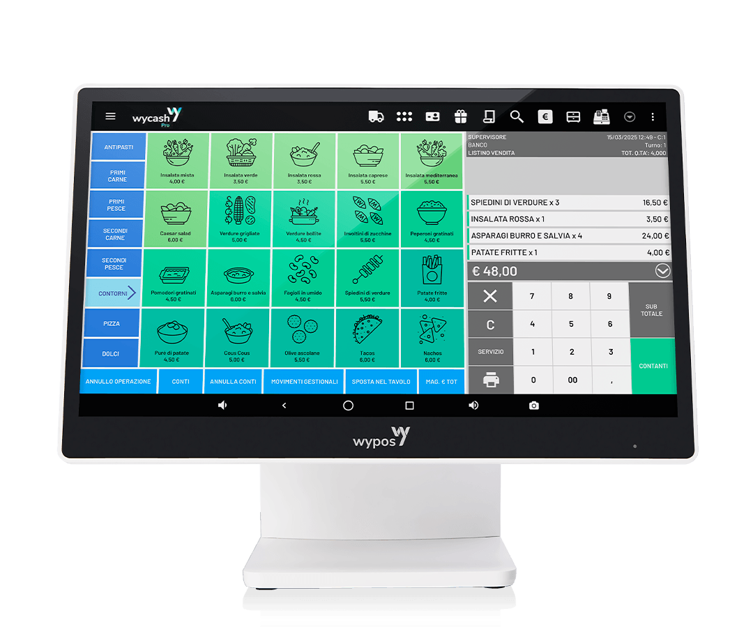 Anche l’interfaccia di Wycash PRO è completamente personalizzabile secondo le tue esigenze. Attraverso il pannello di controllo puoi definire i colori dell’interfaccia e abbinare immagini a tua scelta agli articoli e alle funzionalità, per favorire la massima comprensione in un colpo d’occhio.
